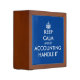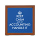Keep calm and let accounting handle it funny Desk Organizer gift for accountants. Custom desk pencil holder for home or office. Make your own funny keep calm and carry on quote. Fun Birthday gift idea for bookkeeper, auditor, tax preparer, coworker, colleague, husband, wife, boss, corporate employee, staff, personnel, manager, coach etc. Modern typography template with crown. Blue or custom background color. Wooden organizer for pens and pencils. Double sided print. Add your own personalized text.