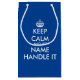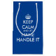 Keep calm and let handle it funny blue gift bag. Modern typography with crown. Blue or custom color. Fun for unique personalized presents.