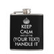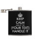 Keep calm and let ... handle it funny custom drink Flask. Make your own humorous keep calm and carry on parody. Fun Birthday, retirement or Christmas gift idea for men. Modern typography with crown. Black or custom color. Drinking humor presents for guys.