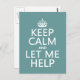 Keep Calm and Let Me Help (customizable colors) Postcard