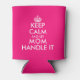 Keep calm and let mom handle it cool Mother's Day Can Cooler. Create your own personalized 'Keep calm and carry on' parody. Modern typography template with crown. Personalized gift ideas for mother, grandma, stepmom etc. Change into any colors. Also great as Birthday present from kids and husband. Double sided print.