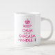 Keep Calm and let sarcasm handle it funny big Giant Coffee Mug. Custom large jumbo size cup. Create your own funny keep calm and carry on quote. Modern keep calm typography template with pink crown. Fun personalized 20oz drink ware for friends and family. White oversized coffee mugs with double sided print design. Dishwasher and microwave safe. Fun Birthday gift idea for coworker, colleague, boss, employee, teacher, coach, mom, wife, girlfriend etc.