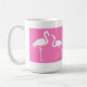 This is a fun mug for Flamingo lovers! The design goes all the way around the mug and features two flamingos on a bright pink background.
