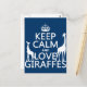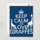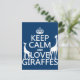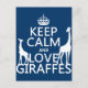 This reads 'Keep Calm and Love Giraffes' in the traditional style. Two proud tall giraffes stand on either side of the words. It's one of my most popular designs, both as a t-shirt and on many other products. Makes great gifts for anyone who loves giraffes. And everyone loves giraffes.