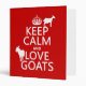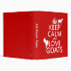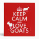 The design reads 'Keep Calm and Love Goats'. Two goat silhouettes stand on the letters. It's a beautiful design, great for anyone who works with goats, keeps goats, or just loves goats.