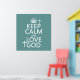 This reads Keep Calm and Love God, in the style of the classic keep calm poster. It is decorated with crosses standing on the letters. It's a fun christian design, which is fun and welcoming. Great presents for anyone in the church.