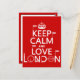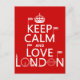 This reads Keep Calm and Love London, in the style of the classic keep calm poster. There are union flags flying on the letters. Additionally the word London is made up of famous landmarks, including the millennium wheel, tube sign, london bus, and big ben. It's a wonderful fun design, which is eye catching and raises a smile. Great for every anglophile, tourist or local.