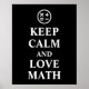 Celebrate your inner math nerd with this clean and classic black and white poster! Featuring the phrase "Keep Calm and Love Math" and a simple icon of mathematical symbols, this design is perfect for classrooms, home offices or study spaces. Available both in print and instant download.