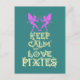 “Keep Calm and Love Pixies” is our unique, fun design based on the parody of the famous “Keep Calm and Carry On” British slogan from the 1940's.