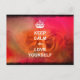 Keep calm and love yourself, the meme with an orange rose reflected, dark framed and red tinted