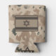 Text reading "KEEP CALM AND MAKE ALIYAH" superimposed on a desert camouflage background. A military brown "subdued" style flag of Israel appears on the reverse side.