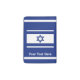 Blue and white. White text reading "KEEP CALM AND MAKE ALIYAH" on a blue background. An Israeli flag appears on the reverse side along with a place for you to add your own additional text.