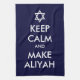 Features text reading "KEEP CALM AND MAKE ALIYAH." Aliyah (עלייה), meaning ascent, is the Hebrew word for immigration to Israel from the diaspora. Aliyah is considered to be "going up" in the direction of Jerusalem. What are you waiting for?