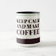 A coffee mug with a design that says: “Keep Calm and Make Coffee”. This design was created by Debbie Quick from Debs Creative Designs. www.debscreativedesigns.com