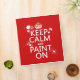 This reads Keep Calm and Paint On, in the style of the classic keep calm poster. There are splashes of paint all around the words. It''s a fun, bright design, which is perfect for both artists and decorators. Wonderful t-shirts for when you're decorating, or business cards for the professionals.