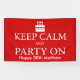 Keep calm and party on .. personalized banner with birthday cake and candle design with a twist on the old war saying fun party banner signs from Ricaso