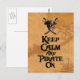 Parody of the popular keep calm and carry on quotation, but for Pirates! Keep Calm And Pirate On. Pirate Skull and crossed swords with a vintage pirate map of the Florida Keys background.