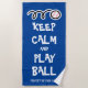 Keep calm and play baseball funny beach towel gift for coach or player. Cute personalized beachtowel for him or her. Make your own fun towel for pool, beach or sports. Humorous present for baseball player, coach, sports trainer, teacher, kids, retired person, friends, family, girl, boy, teenager etc. Customizable in different colors. Blue and white color example. Bold typography template. Add your own name, funny quote or saying. Ball logo with fun typography template.