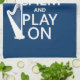 This reads Keep Calm and Play On, in the style of the classic keep calm poster. The silhouette of a harp stands beside the words. It's a simple but striking design, perfect for anyone who loves the harp.