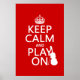 This reads Keep Calm and Play On, in the style of the classic keep calm poster. The silhouette of a violin rests against the words. It's a beautiful simple design, which any keen violinist, learner or professional, will adore.