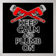 Plumber Humor with the Internet meme "keep Calm". Crossed plumbing pipe wrenches and the slogan "Keep Calm and Plumb On"
