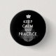 Of the "keep calm" motto, this "Keep Calm and Practice" Your Violin Button is a cute little statement for violin players. Black color adorned with grey violin image in background.