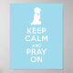 Sweet & cute poster with "Keep Calm and Pray On" wordings and little boy praying. Blue background.