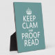 This is the traditional 'Keep Calm and Carry On' poster reworded to 'Keep CLAM and Proof Read'. It's my best selling design, popular with teachers, students, writers, and anyone else who works with words. Also sold a few to clam-enthusiasts!