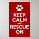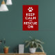 It's the very cute, classic, "Keep Calm And Rescue On" poster. Featuring a heart above the words, this poster looks great on any wall! Grab yours today, and support animal rescue in style.
