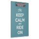 Keep Calm and Ride On Blue Personalized Clipboard
