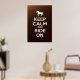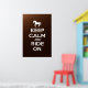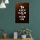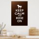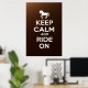 Keep calm and ride on product with white colored text and dark background. A variation of Keep Calm and Carry On