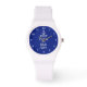 Keep Calm and sail on nautical wrist watch gift idea for sailing enthusiast. Customizable colors. Vintage Keepcalm typography template with white boat anchor silhouette. Personalizable navy blue background color and text. Cute Birthday gift idea for girl, teenager, girlfriend, sailor wife, mom, friend, coworker, colleague, sister, aunt, grandma etc.