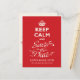 Ivory White Keep Calm Typography Text On A Red Background, Flourish, Whimsical And Elegant Script, Funny Save The Date Announcement Postcard.