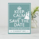 As well as invitations and magnets, 'keep calm and save the date' is available on many products, including postcards, ornaments, even tea towels.