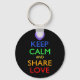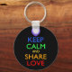 Celebrate pride with this fun design that spoofs the famous British propaganda phrase, which here reads "Keep Calm and Share Love" in the same poster-style all capital font. The words are in rainbow colors and the crown icon has been replaced by a purple heart. This cheerful design is great for spreading love among your community. Love is love.