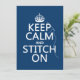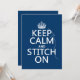 This reads Keep Calm and Stitch On, in the style of the classic keep calm poster. There is a needle piercing the letters, with thread dangling. It's a beautiful simple and eye catching design which will makes a fun range of products loved by everyone who loves to sew.