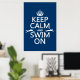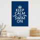 This is one of my most popular products, it reads 'Keep Calm and Swim On', with two figures swimming between the words. It is based on the classic Keep Calm poster, and keeps the traditional crown at the top. Perfect for swimming coaches, and swim teams, and anyone who loves to swim.