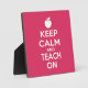 A product featuring keep calm and teach on slogan, a variation of keep calm and carry on slogan. This product is great for teachers and students and everyone dealing with teaching and education