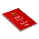 This notebook features a red background, with an image of a green apple on three red books, with the text, "Keep Calm and Teach On".