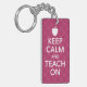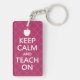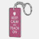 Pretty fuchsia magenta pink plaid background with white "keep calm and teach on" text, a fresh and feminine gift for the female teacher to provide motivation and inspiration from the classic "keep calm and carry on" British wwii propaganda. A lovely teacher appreciation gift. Copyright © www.CuteComfy.com