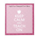 Pretty fuchsia magenta pink plaid background with white "keep calm and teach on" text, a fresh and feminine gift for the female teacher to provide motivation and inspiration from the classic "keep calm and carry on" British wwii propaganda. A lovely teacher appreciation gift. Copyright © www.CuteComfy.com