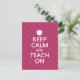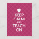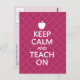 Pretty fuchsia magenta pink plaid background with white "keep calm and teach on" text, a fresh and feminine gift for the female teacher to provide motivation and inspiration from the classic "keep calm and carry on" British wwii propaganda. A lovely teacher appreciation gift. Copyright © www.CuteComfy.com