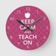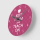 Keep Calm and Teach On, Pink Plaid Round Clock