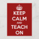 Keep Calm and Teach On Red Postcard