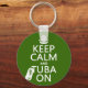 This reads Keep Calm and Tuba On, in the style of the classic keep calm poster. The silhouette of a Tuba rests against the words. It's a fun design, perfect for anyone learning the tuba, as well as professional players.