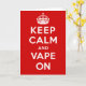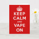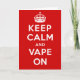 A vaper's funny rendition of the famous "Keep calm and carry on" World War II effort poster. The slogan is Keep Calm and Vape On and the color is red. Vape on and be inspired, ecig lovers!
