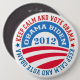Keep calm and vote for Obama 2012, funny political pro-democratic button. Logo with blue red and white stars. Design is available on selected products but can be requested on any product we offer.