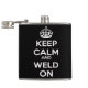 Well made flask, a little better than I had expected. Flask came in clear plastic box which gave it a nice presentation when I took it out of the zazzle packaging. Image is not printed on flask but on sticker. Don't know how this will hold up I haven't used it yet. This would make a Great gift! I plan to purchase more for friends! Cheers. I thought a little brighter than computer. Very crisp, writing wasn't