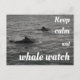 Keep calm and whale watch postcard with photo of pilot whales, taken near Iceland