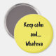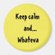 So many "Keep calm/ Stay calm" quotes. We should simply say, "Keep calm and Whateva." The quote is on a large, yellow, 3-inch, round magnet.